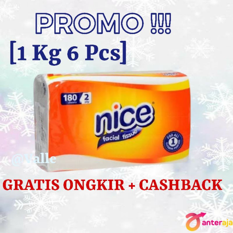 ===SIAP KIRIM===Tissue Nice 180'sStok selalu ready,silahkan langsung di order•1Kg muat 6 Pcs•1 Karton isi 60 PcsNice Facial Tissue Soft PackMemiliki daya serap tinggiDidesain halus dan lembut serta tidak menimbulkan iritasi.Ideal digunakan untuk dirumah, dikantor, serta pada saat beper