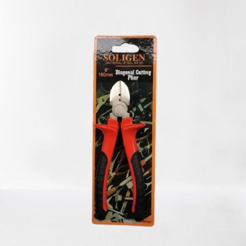 Tang potong 6 inch / diagonal cuttingDeskripsi produk :- Merk Soligen- ukuran 6 inch ( 160mm )- pegangan gagang dilapisi karet- tang serbaguna cocok untuk kegiatan pertukangan- bahan bagus dan