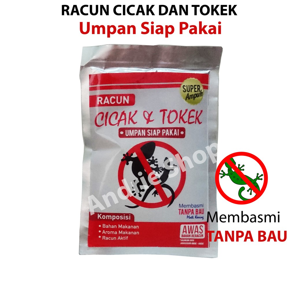 Racun Cicak & Tokek Pembasmi Super ampuh dan Tanpa BauRacun Cicak dan TokekRACUN CICAK ampuh dan efektif, Cicak mati kering, tidak bau dan tidak akan membuat cicak lain jera untuk memakannya. Racun cicak ampuh mengandung zat racun akatif, sangat efektif membasmi cicak .Bangkainya tidak busuk dan bau, bangkai cicak yang diracun dengan racun ini akan kering dan tidak bau, sehingga tidak menganggu kita. Racun cicak ini bisa dipakai untuk dirumah bahkan rumah walet. Racun cicak ini sudah berbentuk umpan siap pakai tidak perlu dicampurkan dengan bahan lainnya.Racun cicak langsung mati setelah memakannya, Karena karakter racunnya bersifat Haight acting racun cicak ini tidak akan membuat efek jera pada cicak yang lainnya. CARA PAKAI:Tuang sedikit umpan racun pada wadah, Letakkan ditempat yang biasa dilewati cicak dan dalam beberapa hari kemudian populasi cicak akan mulai berkurang. HARAP DIPERHATKAN : Ketika menebarkan racun cicak ini, jangan sampai umpan kontak langsung dengan kulit kita.Gunakan sarung tangan karet/ plastik, dan selalu mencuci tangan dan tubuh yang mungkin terkena umpan racun ini dengan sabun sampai bersih.Bahan ini sangat beracun, hati-hati dalam penyimpanan, jauhkan dari jangkauan anak-anak.Jika kontak dengan kulit segera cuci dengan sabun sampai be