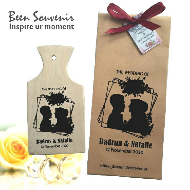 souvenir talenanharga termasuk talenan, pack amplop, pita, dan kartu ucpan. min order 100pcs.po 7 haricara order: klik belitulis nama mempelai dan pilihan desain di catatan orderpembayaran#souvenirspesial#souvenirmurah#bahankayu#talenantele
