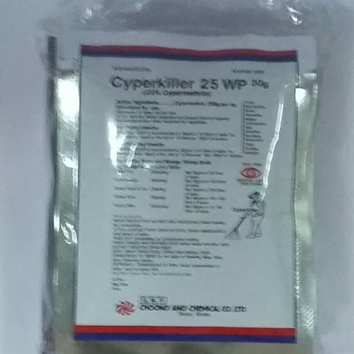 BARANG READY STOCKDIJAMIN BARANG 100 % ORIGINALMerupakan pembasmi kutu-kutu walet. Kutu-kutu pada kotoran walet maupun sarang - sarang walet.Cara Penggunaan :1. Untuk Serangga TerbangCyperkiller 25WP dosis digunakan 30gram di larutkan dalam 10 liter air.2. Untuk Serangga MerayapCyperkiller 25WP dosis digunakan 60gram di larutkan dalam 10 liter air.Penggunaan untuk burung walet satu bungkus 30gr dicampur dengan beberapa liter air (Secukupnya) kemudian disemprotkan kesetiap sudut ruangan yang terdapat kotoran walet, papan sirip dan tempat bersarangnya ko semut, kecoa dan binatang penganggu lainnya. serbuk cyperkiller ini sudah terbukti efektif untuk memberantas serangga-serangga penganggu kenyamanan walet didalam gedung.Cyperkiller adalah sebuah produk masih asli dari korea berupa bubuk 1 sachet 30 gram hanya dicampur dengan air antara 5-10 ltr atau disesuaikan kebutuhan sedikit bisa banyak juga bisa.di kocok kocok sampai tercampur merata menjadi berwarna agak p