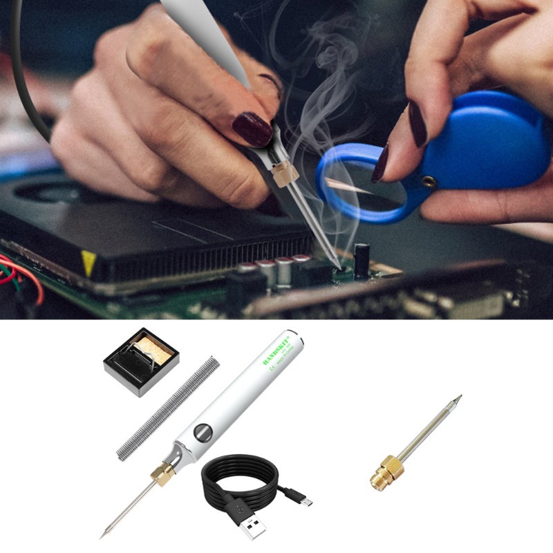 #5V #8W #Soldering #Kit #Mini #Electric #Soldering #Iron #Tools #Equipment #USB #Powered #Adjustable #Temperature #with 5V 8W Soldering Kit Mini Electric Soldering Iron Tools Equipment USB Powered Adjustable Temperature with Solder Stand and Tin WireFeatures: The USB soldering iron is of internal heating thermostat, aluminum-free soldering tin, anti-oxidation, fast heating, easy installation.High / middle / low selection modes, tin melt time is less than 15 seconds, small tip makes the electric solder ideal for SMD work and other small welding jobs.Press and hold the switch for over 2 seconds to turn on the soldering Iron, it can heat up and cool down quickly, with auto sleep function.The soldering Iron is small and exquisite, made of high quality stainless steel, not easy to rust and aging, strong and durableMultiple power supply methods, USB with charger, with computer, with mobile power, the digital solder iron is convenient and practical.Specification: Input Voltage: 5 VPower: 8 WTemperature Range: 330-450 ℃Tin Melting Time <15SAuto Sleep Time 10MinPackage Weight: 259 gProduct Size:17x8.5x2.5cm/6.69x3.35x0.98inchSoldering Iron Stand: SteelMaterial: Plastic+MetalColor : Same as PicturePackage Includes: 1x 5v Soldering Iron1x Soldering Iron Tip (with package )1x USB Slicone Power Cord1x Soldering Stand1x Tin Wire(5g 1m)1x English Manualnote: 1. Please be really careful when you are using the tools to avoid pricks or other injuries,You’d better keep it somewhere kids can’t reach.2.The iron heats up fast,so please select a suitable temperature. Working for long hours and high temperature may shorten its life.3. Do not allow the iron to idle at operating temperatures for extended periods, This could burn the soldering iron and even other things.4. There are soldering iron kit and soldering iron tip for your selection. Please make sure which you will need before you place order. Thank