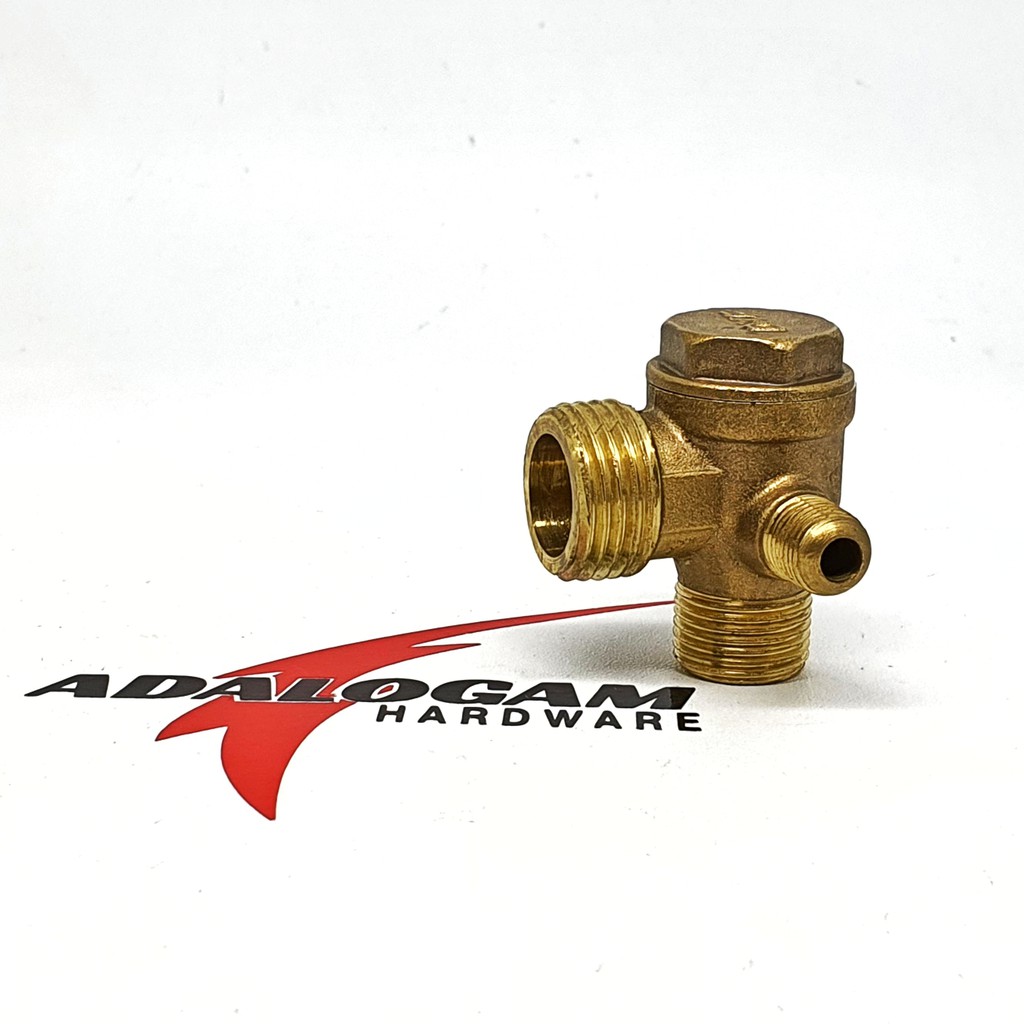 • one way atau check valve• untuk kompresor• bahan kuningan• size 1/2 x 3/8 x 1/8 all Male• happy sho