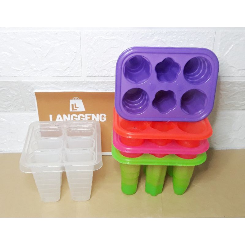 Cetakan serba guna, buat es krim bisa, buat agar-agar juga bisa ready bentuk es krim biasa warna putih, kalau berbentuk bunga yang warna