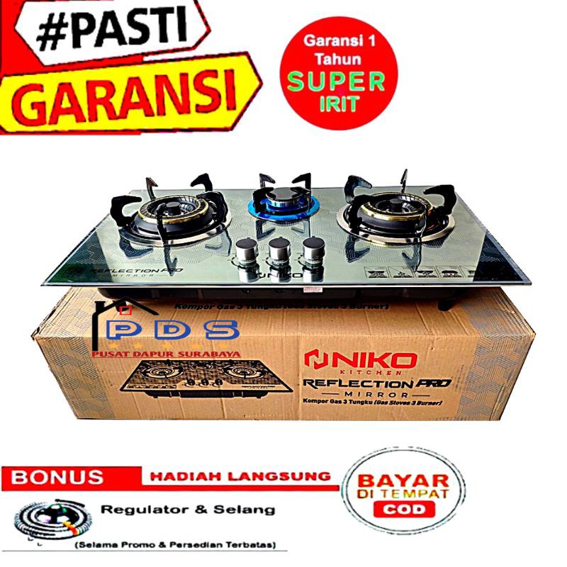 Best Seller Elekt di Kabupaten Flores Timur Niko Reflection Pro Kompor Tanam 3 Tungku Gas Lpg Kaca Temperdglass Tahan Panas Anti Pecah dari Pusat Dapur Surabaya Kota Surabaya