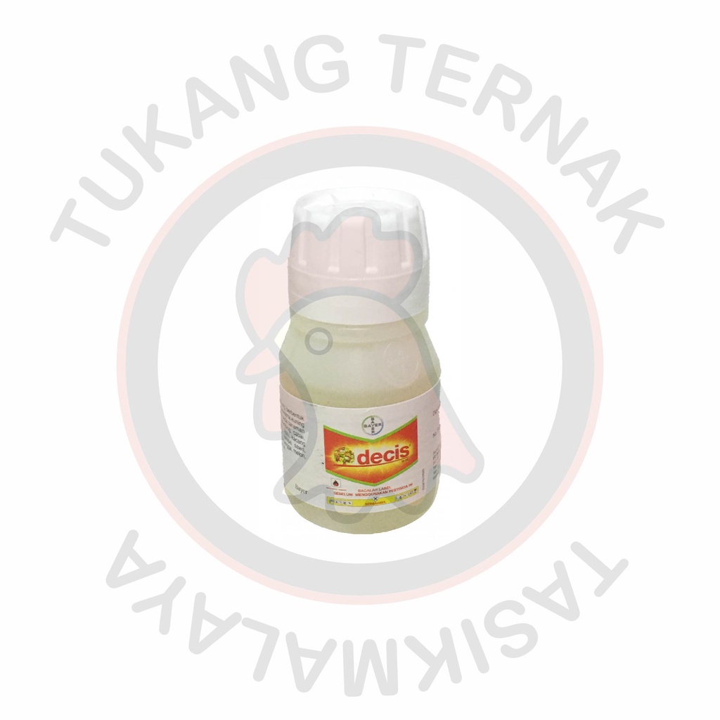DECIS 25EC 50 MLDecis 25EC adalah Insektisida racun kontak dan lambung berbentuk pekatan yang dapat diemulsikan berwarna kuning jernih untuk mengendalikan hama pada tanaman anggrek, apel, bawang merah, belimbing, cabai, jagung, jarak pagar, jeruk, kacang hijau, kacang panjang, kakao, kapas, kedelai, kelapa sawit, kentang, ketimun, kopi, kubis, lada, mangga, melon, semangka, teh, tembakau dan tomat. Bahan aktif : Deltametrin 25 g/lCara Penggunaan :Campurkan 2 - 10 ML Cairan Decis pada 1 Liter air. Lalu semprotkan pada tanaman yang terserang hama---------------------------------------------------------------------------------------------------------------------------------------------------------------------------------------FAQ:"Barangnya ready gak kak?"= Stock bergantung pada keadaan offline store kami. Lebih baik tanyakan terlebih dahulu stock barang yang Anda inginkan."Kapan dikirimnya kak?"= Bisa langsung dilihat di bio"Bisa COD gak ya?"= Bisa, tapi khusus melalui J&T Express saja"Expirednya kapan ya?"= Kami pasti sesuaikan tanggal kadaluarsa dengan tanggal orderan Anda, kok! Jadi tidak perlu khawatir. Kalau Anda ingin memastikan lagi, bisa langsung chat dan minta dikirimkan foto tanggal kadaluarsanya."Barangnya sesuai di poto kak?"= 100% Sesuai & Ori (No KW), timbangan tidak dilebihkan dan dikuran